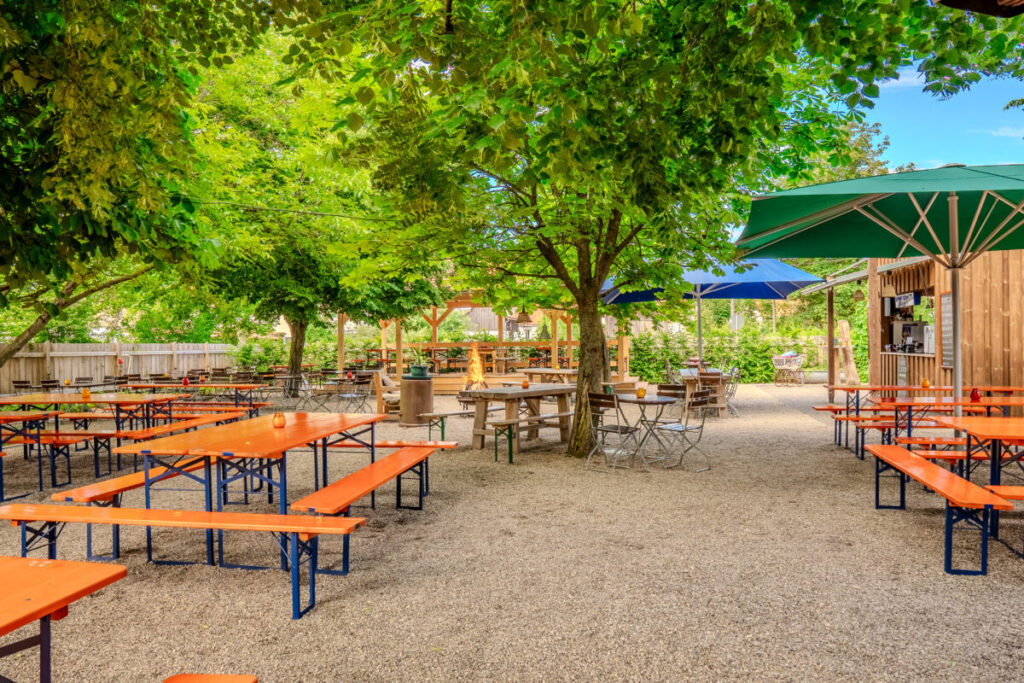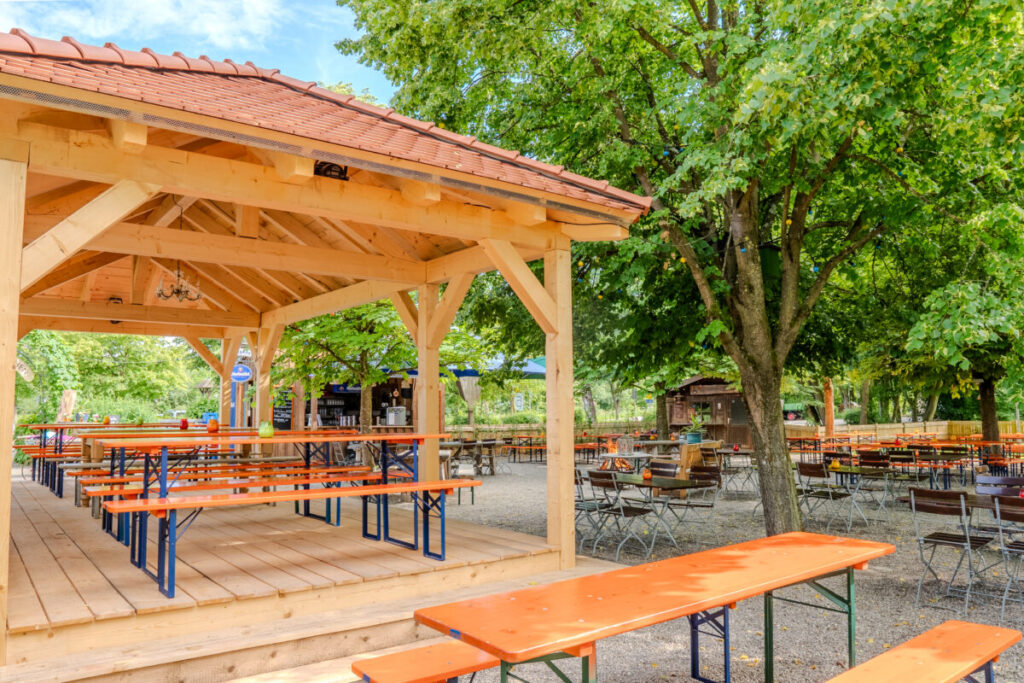 Ausreichend Sitzplätze für Gesellschaften bis 200 Personen, davon ca. 60 Sitzplätze mit Überdachung.Musikeinlagen im Biergarten ausschließlich akustisch,